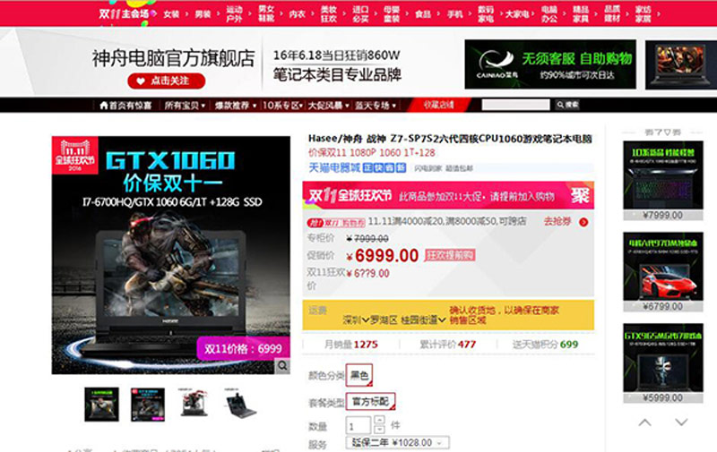 双十一期间很多商家都打出很多促销政策,但是也有不少商家以次充好,为了让顾客选购良心产品,今天小编综合配置和价格,特推荐神舟电脑的两款GTX1060游戏本——战神Z7-SP5D1、战神Z7-SP7S2。快点抓紧时间,赶在神舟电脑天猫旗舰店还有优惠活动时行动吧!