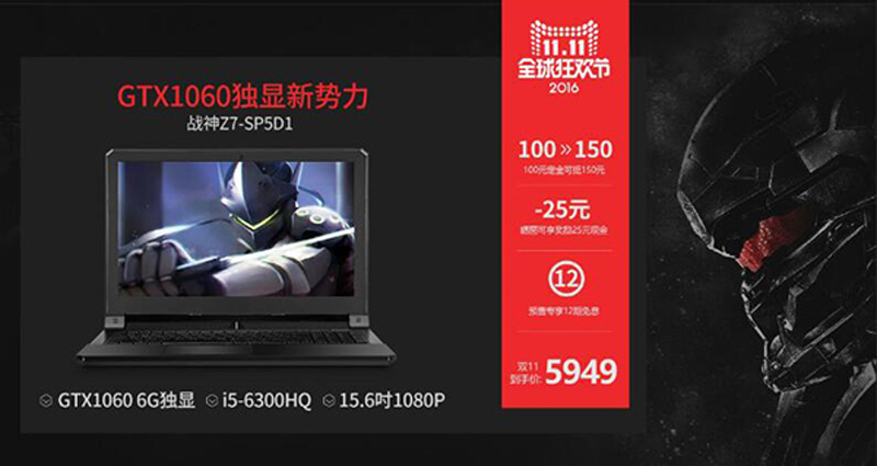 【CN314智能生活】进入十一月就正式拉开了双十一活动的大幕,各个商家也打出各种优惠活动,包括随机满减活动、11元秒杀活动,但是这些更像是商家促销的噱头,不管是秒杀还是随机满减,都是针对一小部分人群,很多人并不能享受到真正的实惠。今天小编就来为大家推荐两款真正实惠的笔记本,拥有超高性价比的神舟战神GTX1060游戏本,门槛更是低至5949元,同时也给大家盘点下神舟天猫旗舰店的超值优惠活动。