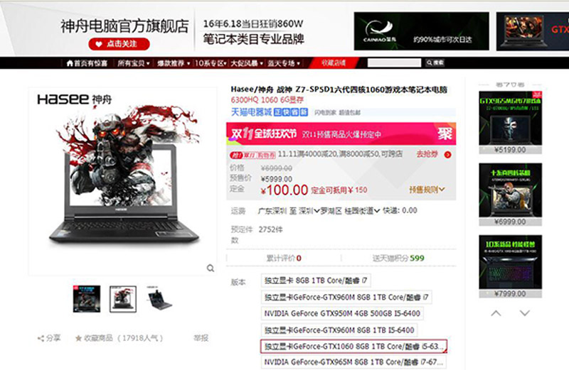 去年的双十一就有厂家备货不足,活活“被撑死”的案例,神舟电脑天猫旗舰店为了保证双十一旗舰的供货,特意将战神Z7-SP5D1开启预售模式,为手慢的朋友提供先机。这样既保证了相对的公平性,也能让真正想买的用户享受到实惠。现在只要预付一百元定金,就可把支付时间延迟至00:30,这对于双十一凌晨抢购的朋友是非常有帮助的。定金的支付不仅保证了抢货,更有“预付100元定金,抵扣150元尾款”的福利优惠,这样一算,GTX1060战神Z7-SP5D1到手仅需5949元,若想升级高配版,还可选择战神Z7-SP7S2!小编认为,十系游戏本才推出不久,能达到这样的低价,就只有双11这一次机会了。想入手十系游戏本的朋友们不要纠结了,机会难得,预购从速。