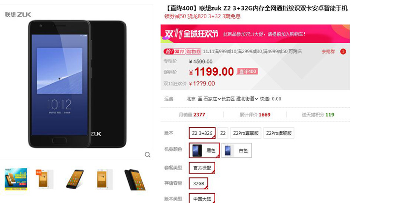 ZUK Z2是联想旗下ZUK手机的第二款旗舰,同样主打性价比市场,今年8月份开卖的3GB RAM+32GB ROM版本仅售1599元,再次刷新了骁龙820手机的价格。