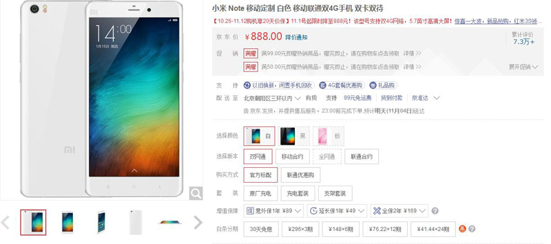 小米Note是小米首次试水高端的机型,刚上市时顶配版的售价高达三千多元,但因为当时骁龙810发热严重,最终以失败告终。虽然小米也推出了骁龙801处理器的版本,但是仍然没有引起用户的注意,价格也是一降再降。现在京东仅售888元,而且还可以享受六期免息,日供只需要不到5块钱,预算不足的用户可以考虑。