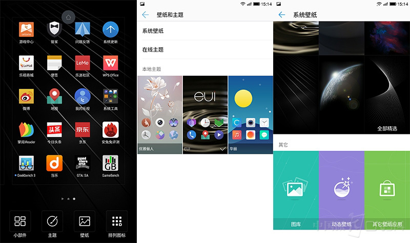 手机出厂配备乐视生态系统,基于安卓6.0深度定制的EUI,非常符合国人的使用习惯。用户只要打开手机就可以进入生态的世界,桌面配有多元化生态入口,可以根据自己的爱好选择直播、球赛和演唱会等等。