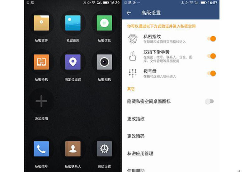 信息爆炸时代大家都有个人的隐私,一些“羞羞”的照片、“不能见光”的联系人和“不健康”的视频等等,对自己非常重要,但是却不想被别人发现。基于这种情况,金立M6/M6 Plus只要两步就可以轻松解决,打开私密空间→添加私密信息。此外,为了做到无痕隐藏,可以把私密空间的图标同样隐藏起来,用户只能通过自己的指纹调取,做到真正的仅对自己可见。