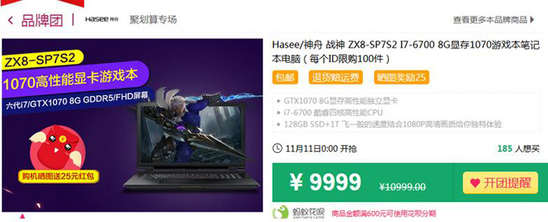 【CN314智能生活】神舟作为电脑行业的领军企业,在今年8月16日昆山发布会上正式推出全球首款10系游戏本,并且在下半年笔记本届以神舟首推的GTX1060独显本引领市场。此外,为了满足打算在双十一期间剁手游戏本的用户,神舟特推出搭载GTX1070独显的游戏本战神ZX8-SP7S2。笔记本使用英伟达第六代全新Skylake平台i7-6700,配合先进的10系显卡,可以带来非常流畅的游戏体验。不仅如此,在双十一期间神舟天猫旗舰店还推出一系列的活动,包括满减优惠券、低价秒杀等等,赶紧看过来吧!