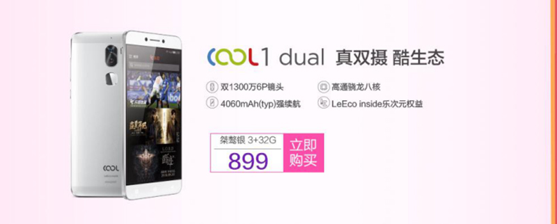 cool1 dual是乐视和酷派在今年八月联合发布的一款手机,凭借千元的价格和配备了双摄像头,一经上市就收获了大批粉丝的喜爱,同时也依靠超高人气创造出一系列的销售传奇。首发当日三大线上平台的60万台现货在15分钟之内全部售罄,六小时之内现货和预售量高达108万台,这样的成绩在手机首发中还是非常少见的。