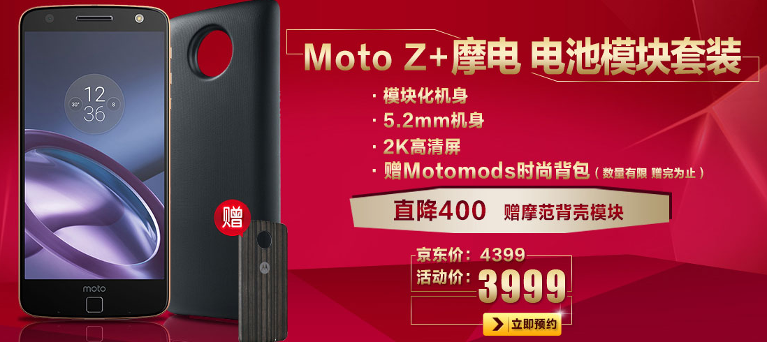 3月2日当天,凡是购买Moto Z系列手机及套装,每满1000立减100。原价4399的Moto Z 摩电套装活动期间直降400,仅售3999;原价4699的Moto Z摩音套装仅售4299,还赠摩范背壳模块,更有限量Moto Mods时尚背包。而拥有超长续航的Moto Z Play 智能手机原价3299,现在仅售2999,还有机会赠送“听键”耳机,数量有限,赠完即止。