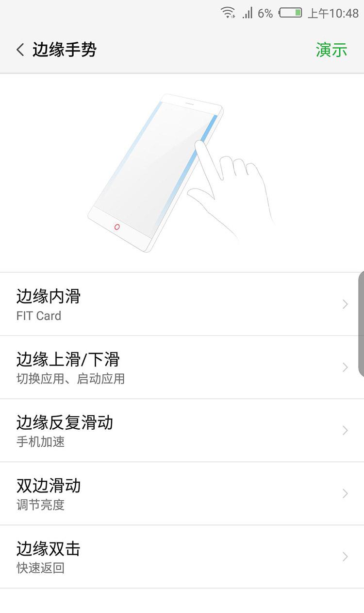 无边框技术也绝对不止好看而已,它还与更智慧的nubia UI 5.0完美结合,为手机操作提供了一个新维度,带来了全新的FiT3.0边框交互技术。用户可以可以在屏幕边缘上实现“FIT Card”、“切换应用”、“手机加速”、“调节亮度”、“快速返回”五大快捷操作,操作速度与舒适度都得到了很大提升,这也为未来的手机操作提供了一个新思路。