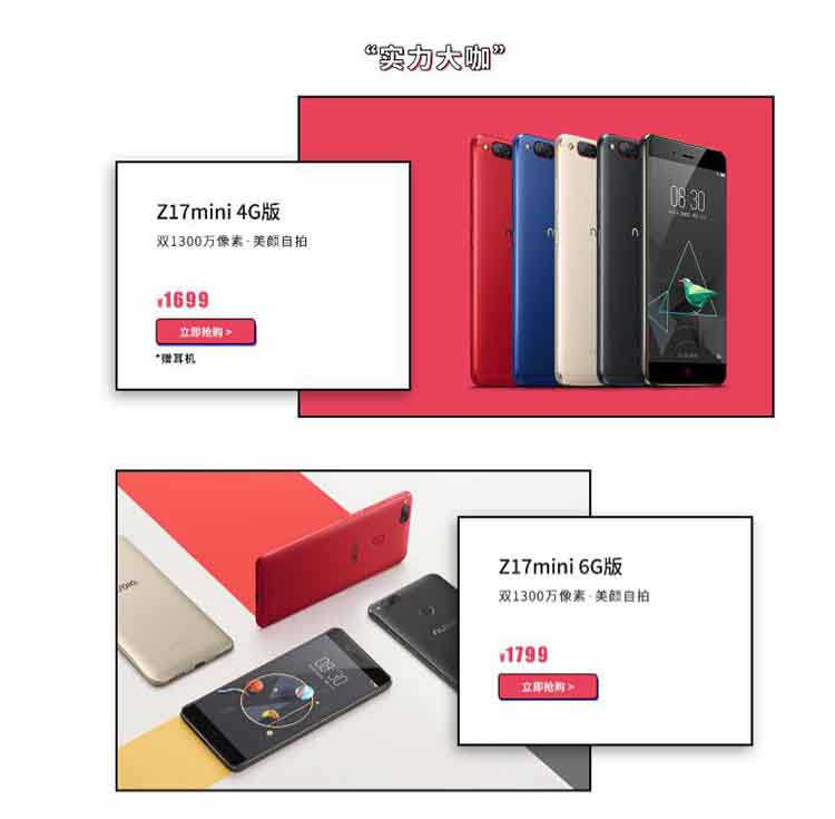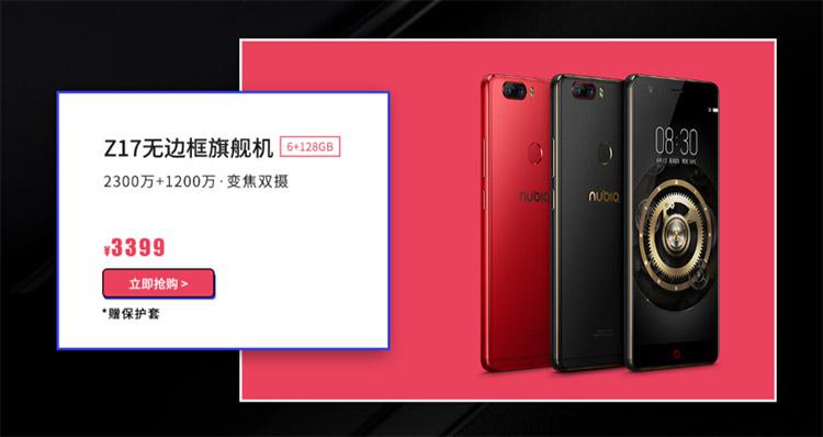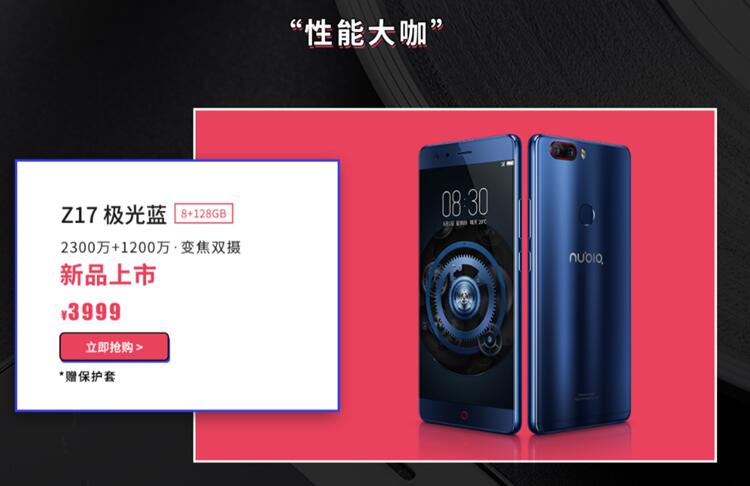 这款手机有64GB和128GB两种规格,目前在官网、天猫、京东平台购买努比亚Z17标准版还赠送保护壳一个,购买努比亚8GB版还可享6期免息。