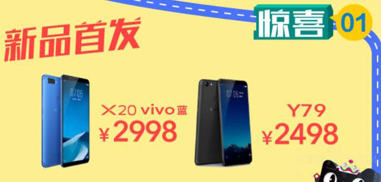 在双11当天,vivo天猫旗舰店迎来多种福利,首先是vivo蓝X20和Y79新品首发,对于这两款新品大家应该都很期待了,一款是全新的vivo蓝配色加量不加价2998元,另一款是全新Y系列的首款2400万自拍+全面屏,售价2498元也是普及型手机。