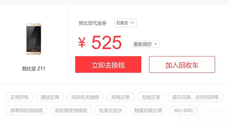 据悉,努比亚Z11的回收价格最高可达870元。笔者这款已经使用多时的Z11,回收价格为525元,可以说非常公道。又比如iPhone手机,iPhone 6 Plus和iPhone 7的官方最高回收价分别为1250元和2080元,与努比亚回收最高可达2300元和3405元差距明显。