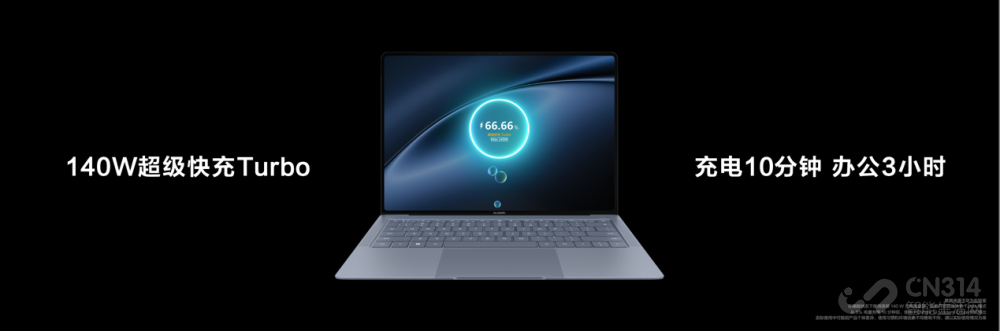 华为MateBookX Pro还创新地采用了双核充电专利技术,140W超级快充Turbo,充电10分钟,办公3小时29。