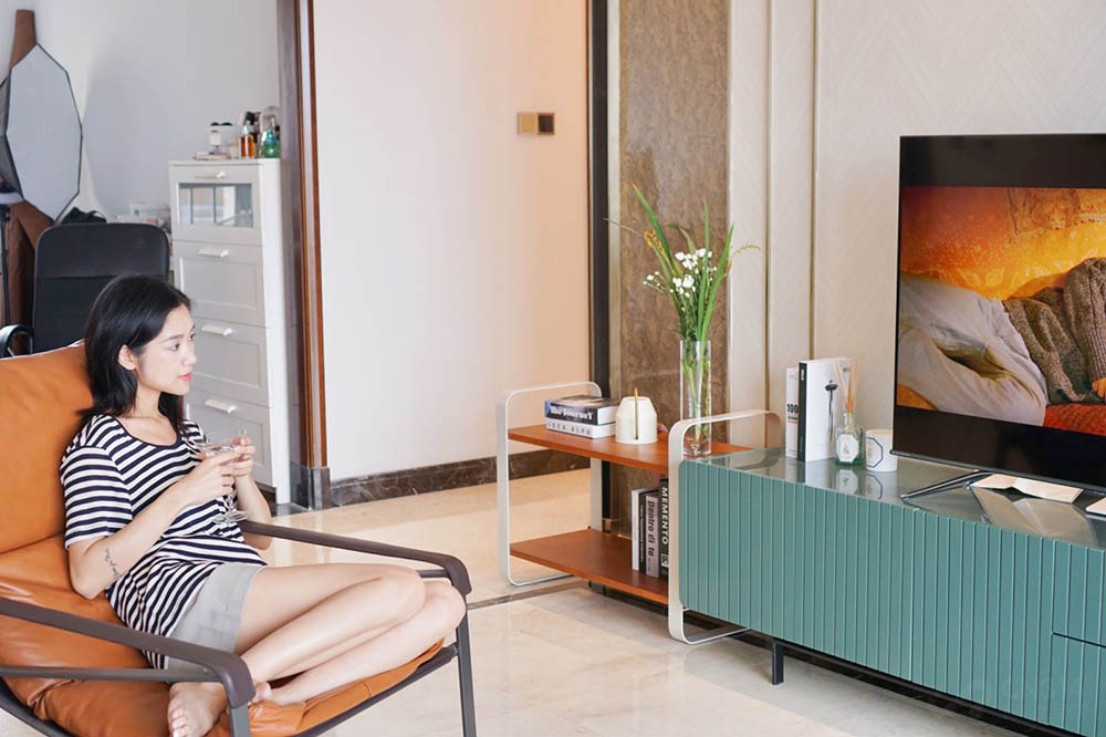 当然,操作还不仅限于语音助手,电视还支持全场景隔空手势,即通过不同的手势完成内容选择、进度调节、暂停播放、AR控制等。这些AI功能让你完全摆脱遥控器束缚,操作上要比索尼KD-65A8H更加方便,且多样化。