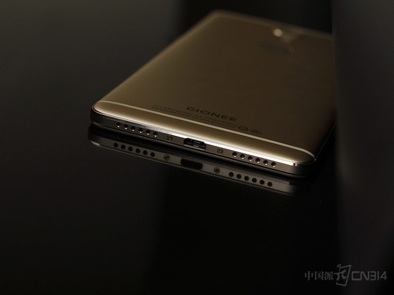 底部开孔方面,金立M6 Plus除了遵循对称设计,还采用了加工难度更高的高光倒角工艺,从小圆孔对光线的反馈也能感受到金立M6 Plus的精工本质。