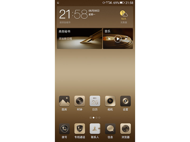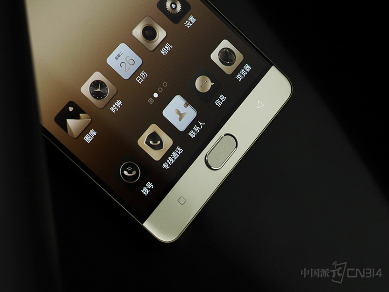 如果在亮屏状态下,你会发现金立M6 Plus的界面和国内另外一款大屏手机非常“像”,同样金色的主题和app布局,如果不是正面的“腰圆Home键”,相信不少人很难将其和华为Mate8区分开来。