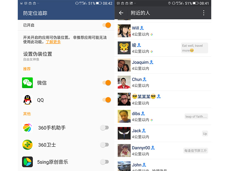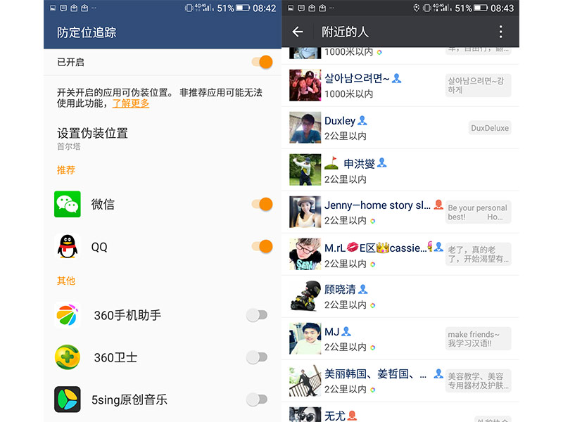 以猜测密码为手段的暴力破解完全行不通。同时大家也可以看到私密空间中的防定位追踪功能,简单来说就是能够自定义位置信息,在使用社交类app时完全不用担心泄露行踪。