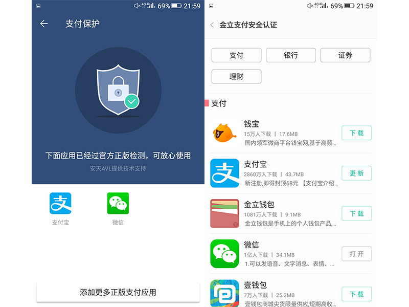 amigo系统会自动对金融类应用进行安全监测,实时扫描支付环境,同时,金立M6 Plus通过了微信的新版指纹官方认证安全标准(支付宝安全标准OTA后续支持),使支付获得了双重保障。