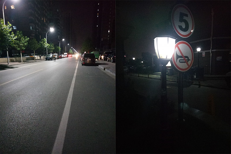 在弱光条件下,金立M6 Plus的表现同样可圈可点,左图中的地面非常清晰,路灯也并没有发生眩光现象,远处的天空同样处理得当;右图的路灯与路牌近距离拍摄,整个画面的层次感非常强,噪点控制也很出色。在拍照方面还是能够感受到金立是下了大功夫的。