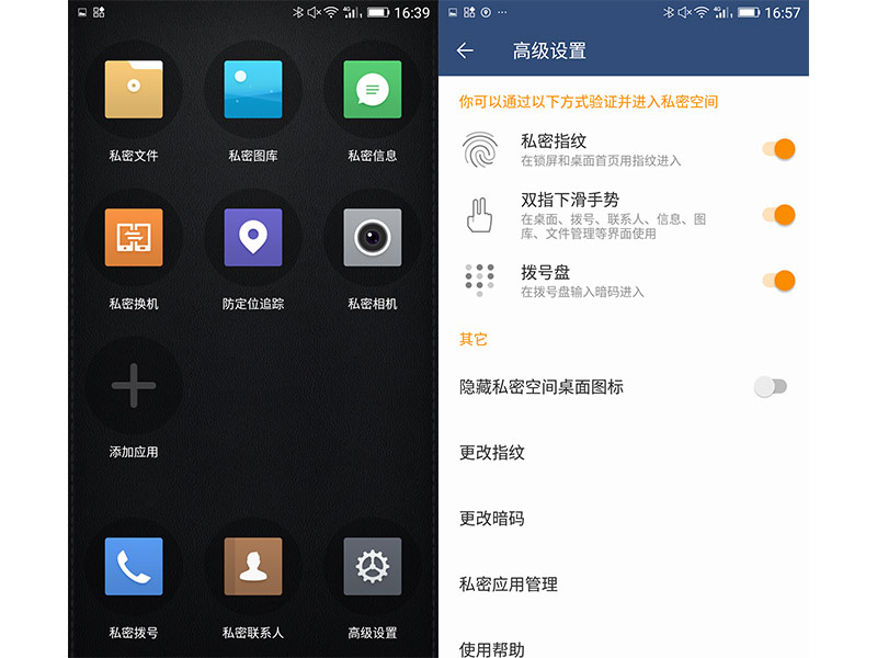 其实现在市面上的主流智能手机基本上都提供了类似功能,基本原理都是采用软件加密文件夹来实现,用户可以把一些通讯录、图片、视频等信息进行保存。表面来看,金立M6 Plus也是如此,但需要注意的是金立手机的加密方式——硬件加密,具有防止暴力破解、密码猜测、数据恢复等功能,这意味着即使手机丢失,也不会有人能够打开你的私密空间。