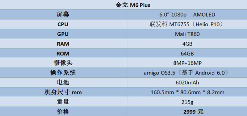 总结:很长一段时间内,金立手机似乎一直游离在主流之外,但其在线下渠道的蓄力发展以及更换品牌LOGO、slogen之后,在市场上的话语权逐渐增强。金立M6 Plus无疑是一款典型代表:除了M系列特色超级续航,还有AMOLED屏幕、4GB+64GB存储组合、独立安全加密芯片以及优化非常出色的amigo OS加持,堪称一款面面俱到的大屏手机。