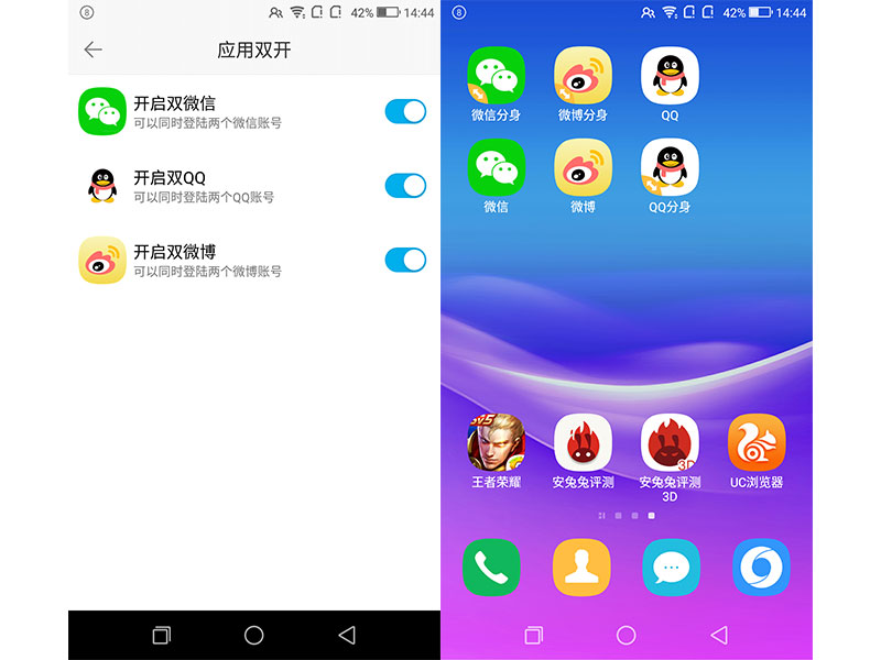 QQ、微信、新浪微博都可以实现双开,重度社交用户可以自由自在的使用i3 Play构建不同的朋友圈了。