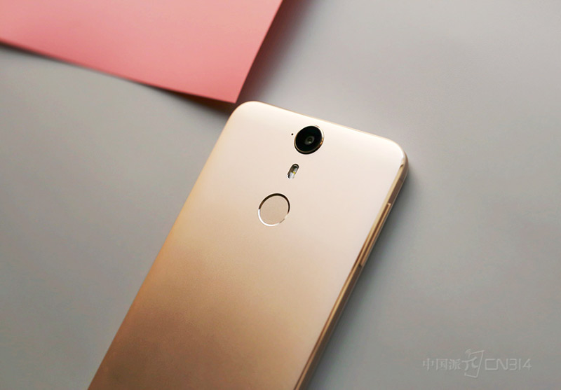 没有过多复杂的设计语言,ivvi i3 Play选择了经典方案的传承。以手中的这台香槟金版i3 Play为例,前白后金造型清新活泼,不管是熄屏还是亮屏状态都保持了非常优秀的视觉效果,对于一款5.5英寸屏幕的产品来说难能可贵。