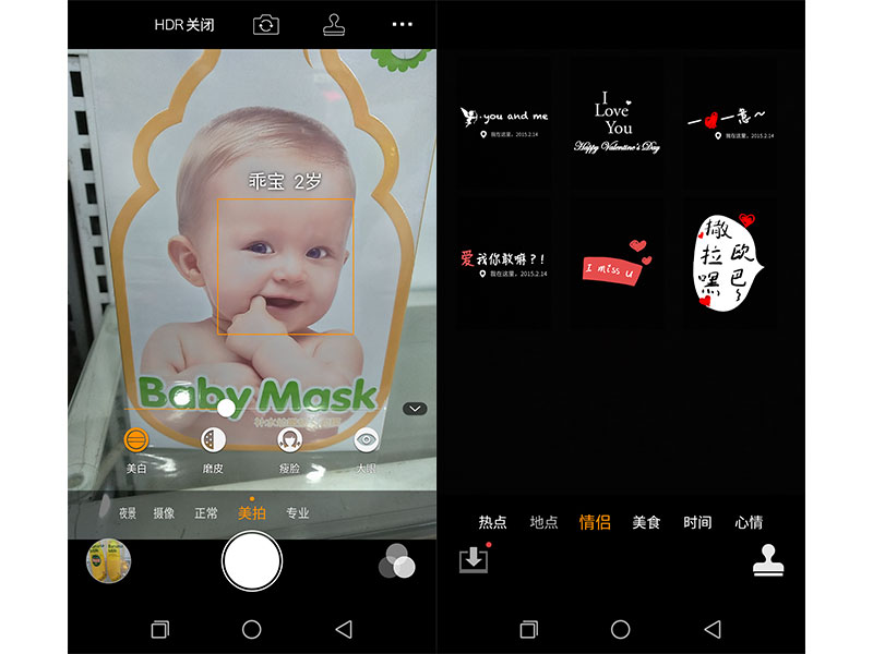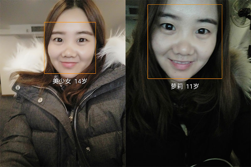 分别用后置和前置摄像头进行美拍,即使在不同的光线条件下依然能够轻松的对人物的面部表情进行精准识别。