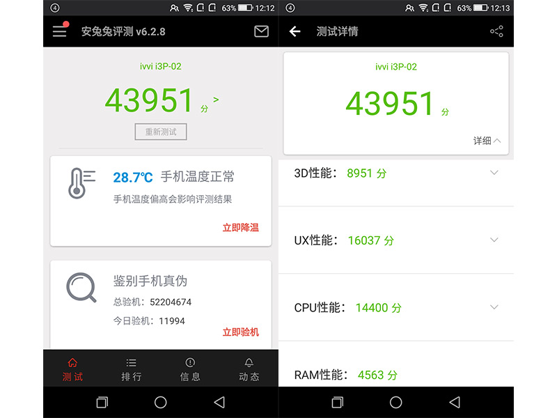 续航方面,ivvi采用了一块3000mAh容量的电池,但由于i3 Play的高通处理器以低功耗著名,在加上ivvi UI2.0的省电优化,续航能力相对来说还是非常给力的。以手中的这台i3 Play为例,经过24小时熄屏待机、分别1小时的1080p视频直播/4G通话/25秒间隔网页刷新/游戏(重度使用4小时)之后,手机仍然有将近40%电量,对于大部分消费者畅快使用一天是完全没有问题的。