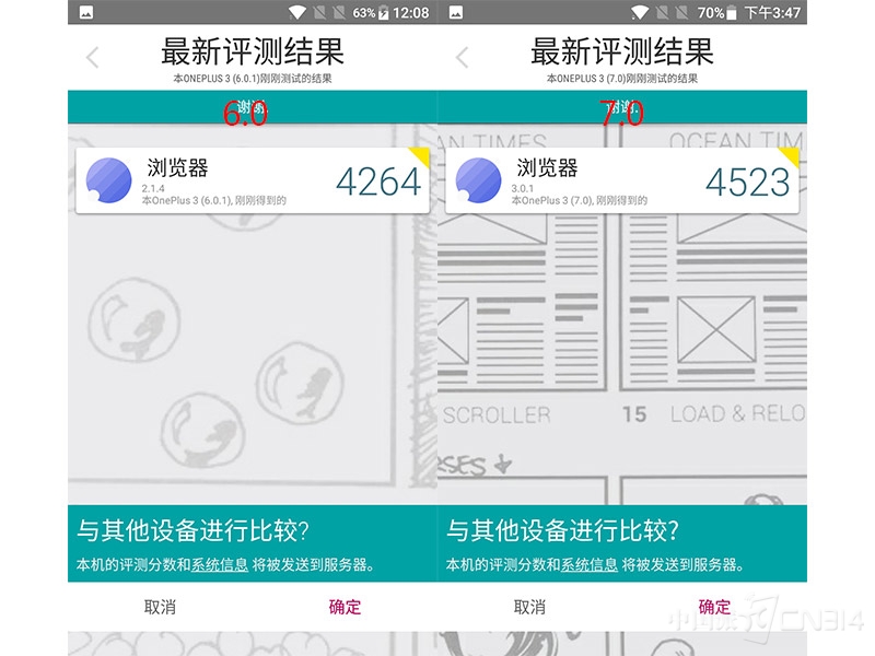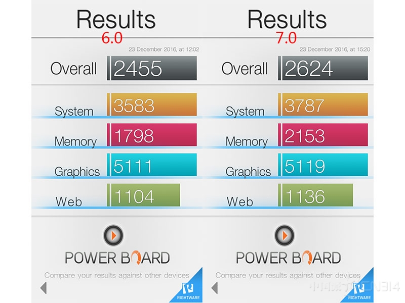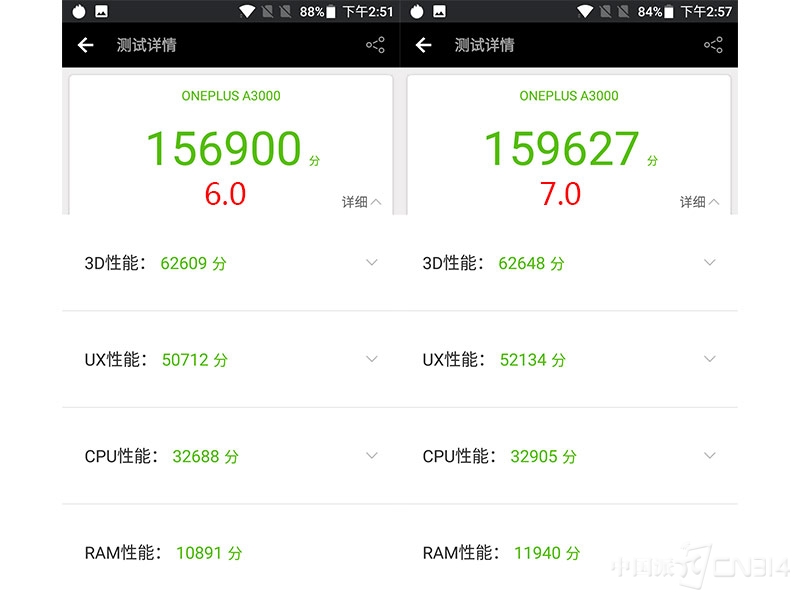 现在回到文章开头的问题,很多朋友都关心7.0到底比6.0带来多少性能提升,幸好在升级之前对OnePlus 3进行了多种测试,下面我们就来看看升级后的测试结果和之前的差距吧。