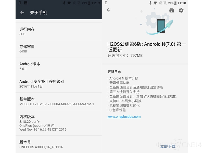 【CN314智能生活】本年度一加手机第三代产品3/3T无疑是当今市场上关注度最高的性能旗舰之一,强悍的硬件配置让其在各大跑分测试中都遥遥领先。但很明显的是一加不止为消费者准备这一件厚礼,H2OS公测第六版——Android7.0第一版更新已经正式向OnePlus 3推送,这意味OnePlus 3用户将领先众多品牌手机吃上“牛轧糖”。