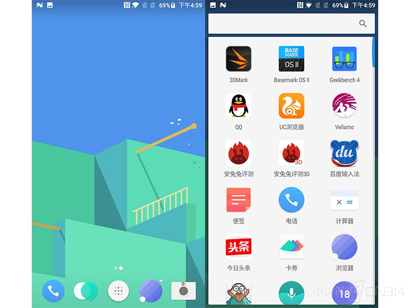 左图为桌面,右图为应用抽屉。如果你平常喜欢倒腾壁纸,那么这个桌面可能会让你爱不释手。