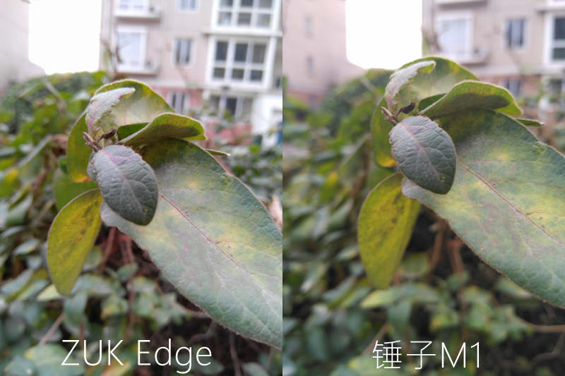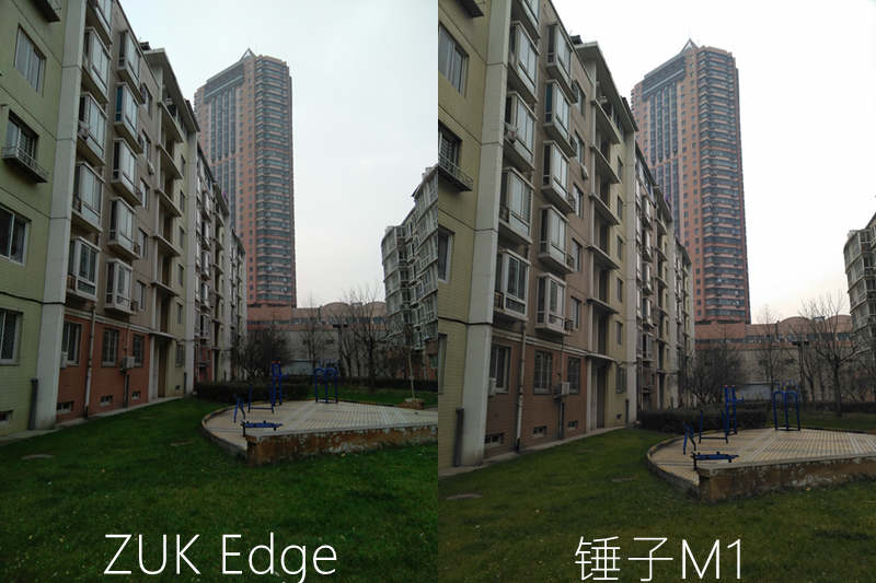 从拍摄样张看两款手机对比画面明暗细节处理的都非常好,锤子M1样张偏暖而ZUK Edge则相反,从样张色彩来看ZUK Edge颜色更接近真实但是观感没有锤子M1好,锤子M1没有很好的兼顾天空将天空拍成了白茫茫一片。