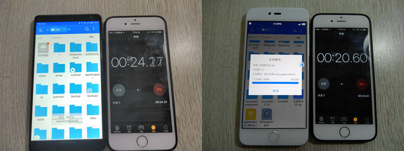 由于ZUK Edge自带的文件管理不具备解压功能,为表公平公正,两款手机都采用ES文件管理器进行测试,从测试结果看,ZUK Edge在解压测试中和锤子M1差距较小,而压缩测试中差距较大,看来两款手机软件的校调还是有一定差距的,当然这些是极限测试,实际体验中两款手机没有太大的区别。