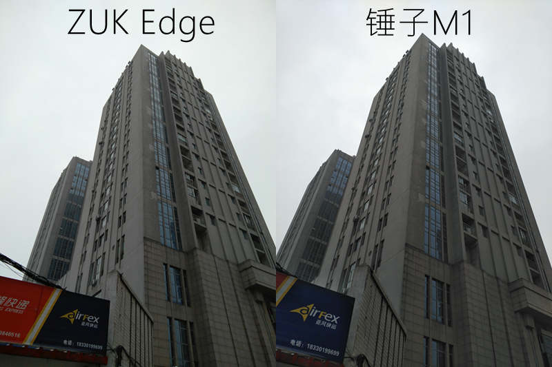 ZUK Edge配备一颗三星1300万像素后置摄像头,光圈为f/2.2,设计定制13.4μm的大像素感光元件,支持PDAF+CAF双对焦,支持EIF电子防抖,不支持光学防抖,锤子M1配备一颗2300万像素后置摄像头,光圈为f/2.0,配备索尼IMX318传感器,支持反差对焦、激光对焦和PDAF相位对焦,另外还支持光学防抖与电子防抖,从参数上看锤子M1要超过ZUK Edge不少,但是手机最终的成像样张还离不开厂家对摄像头的后期校调,我们看看两款手机实际拍摄样张。