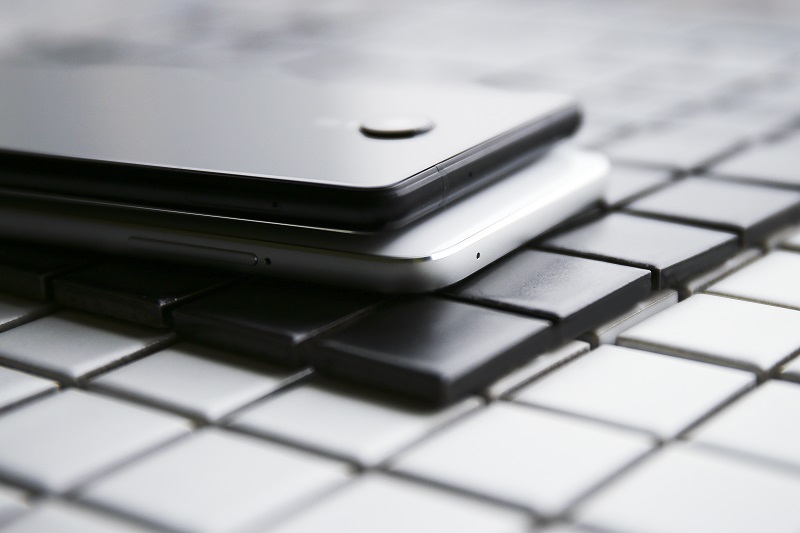从侧面看,锤子M1采用对称型设计,左右均有两个按键,分别管理音量大小以及亮度高低,SIM卡槽被隐藏在左边的按键后面,没有电源按钮,而ZUK Edge左边为SIM卡槽,右边为音量键和SIM卡槽,从手感上讲锤子M1的按键有一些虚,而ZUK Edge则表现正常,按键十分稳定,这可能和两者的设计与做工有一定的关系。