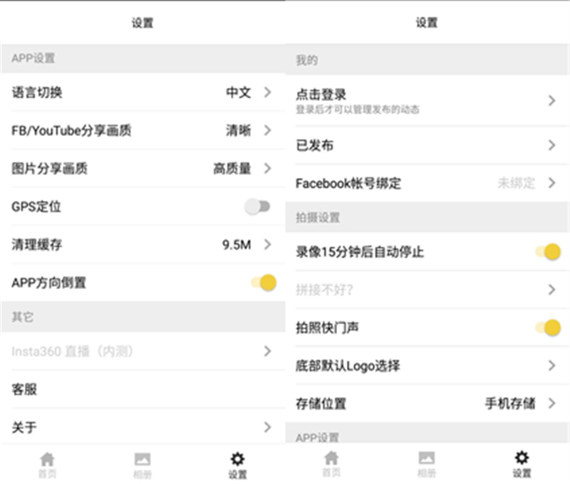 努比亚NeoAir VR相机通过Type-C接口插入努比亚z17手机,可自动连接努比亚全景相机App,App界面设计的非常简洁,分为首页(每日精选)、相册、设置三大部分。每日精选中展示了全球各地用户所拍摄的精美作品,相册页面可以看到自己拍摄的所有作品,设置界面还可以进行一些参数设定。