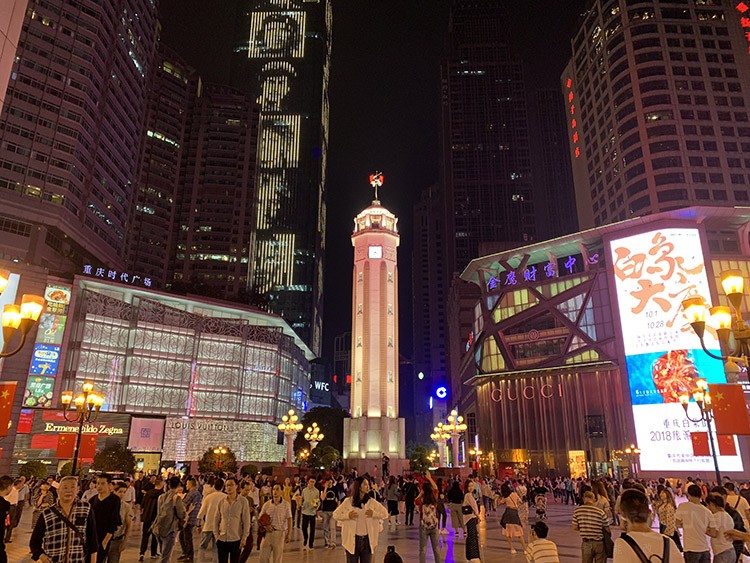 从第一组样张对比中可以看出,这两款手机在色彩还原倾向上有明显差异,iPhone XS Max拍出解放碑偏暖色调一些,颜料仿佛就要溢出一般,且对细节略有涂抹感,但有一种繁华的温暖。相比之下,努比亚Z18的风格则清澈许多,更接近人眼所见,有一种夜晚的凄凉感。(上为iPhone XS Max,下为努比亚Z18)