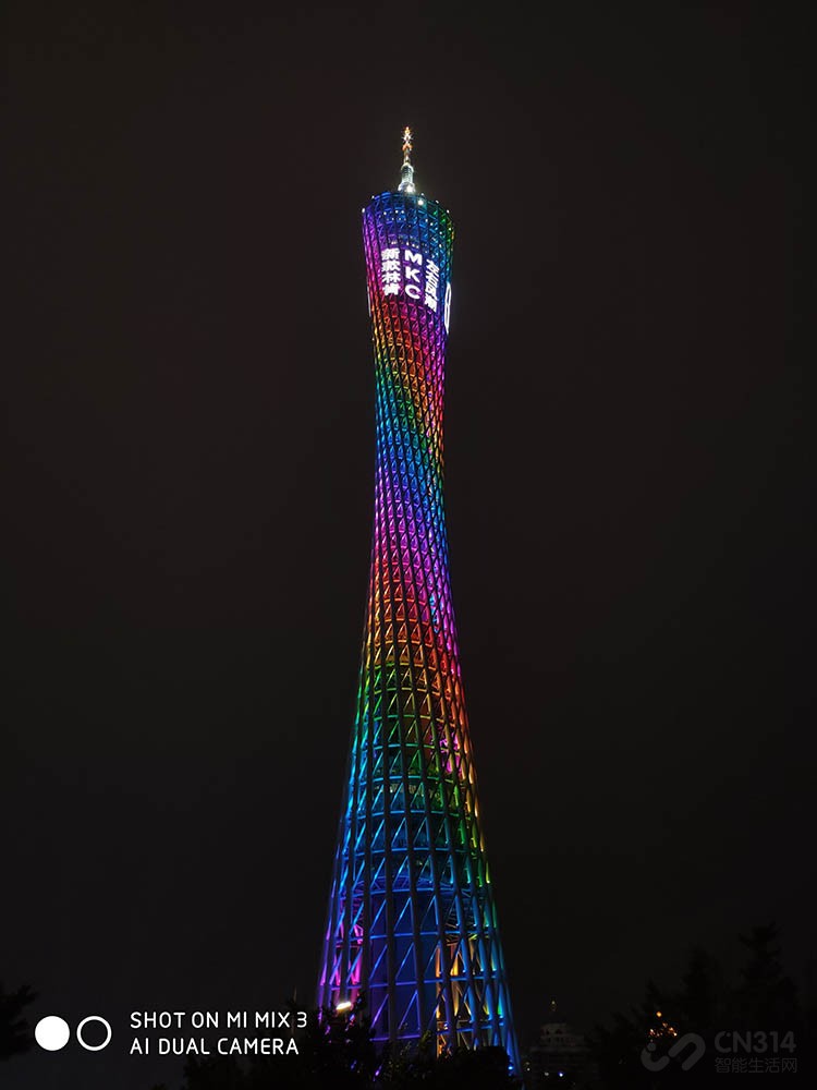 第三组的江景样张,灯光要明亮了许多(上图努比亚X,下图小米MIX 3)。夜晚广州大剧院的灯光不停在变化,当变成火红色时,小米MIX 3的灯光色彩成呈现更为真实一些,努比亚X的灯光偏黄,这往往是白平衡控制不准确造成的。受到建筑灯光的影响努比亚X的控噪水准有些下降,大剧院上方的噪点较为密集,而小米MIX 3看到的噪点更少一些,天空的色彩还原也做到细腻,但是远景的成像清晰度却没有努比亚X做得好,因为右边建筑的广告牌已经彻底模糊化。