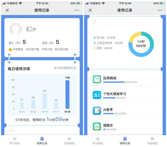 另外,使用讯飞X2 Pro的家长,可以通过自己的手机,查看讯飞X2 Pro使用记录,包括非应用项的记录,这是步步高S5 Pro所没有的。