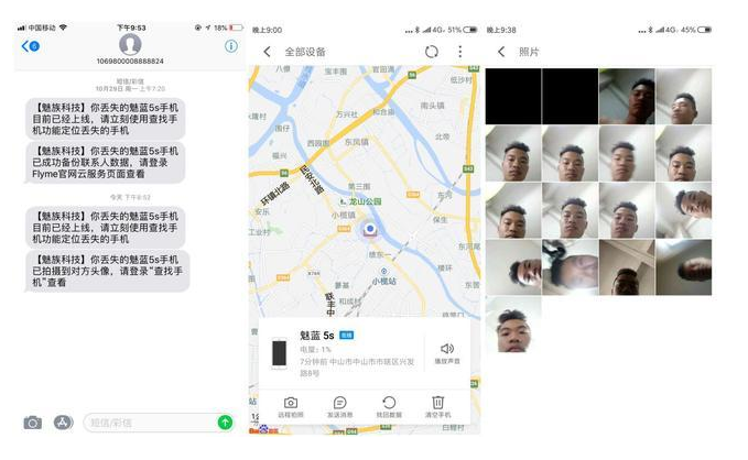 经过这样的操作,基本上找回手机就是板上钉钉的事情了。拥有了详细定位+面部照片就能轻松锁定木匾,不过为了更加稳妥,选择直接报警是最合适的。从这件事情中不难看出,魅族在Flyme查找手机功能发挥着重要作用。