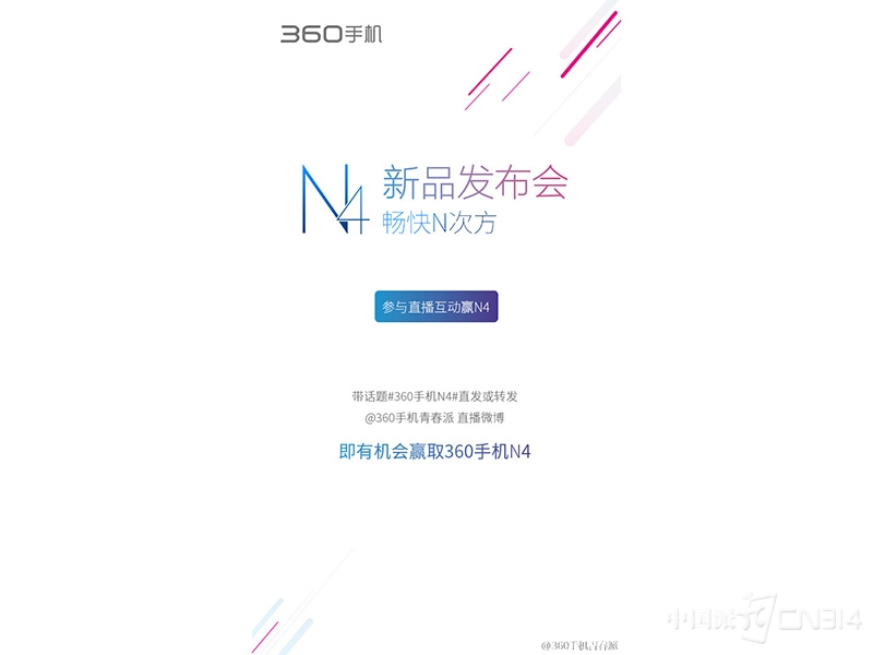 据悉,360手机统一品牌后,将旗下产品分为F、N、Q三大系列,此前主打舒适的360手机f4已经发布,并在市场上收获了大量好评,此次的N4有望延续强势表现。作为一家专注手机行业14年、专注于智能手机报道的媒体,中国派CN314将对360手机N4发布会进行全程图文直播,感兴趣的朋友不要错过。