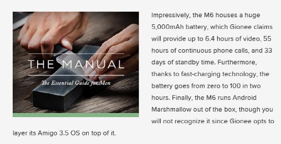 另外,DigitalTrends还针对金立M6系列的“超级续航”属性表示了褒奖,金立M6内置5000毫安时、M6 Plus内置6020毫安时的超大容量电池,无论是连续观看视频的时间还是浏览网页、进行游戏的时间都要比市场上同期产品高很多,这也恰恰满足了政商人士的痛点需求。“超级续航+安全”,金立M6系列或将会开启商务手机的新时代,为政商人士提供更好的选择。