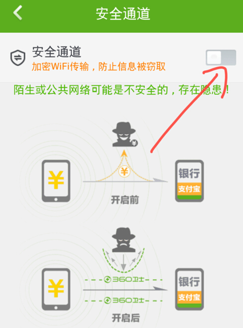 比如说在商场里使用公共Wi-Fi时,很多用户都会直接连接然后使用微信、支付宝等软件进行金融支付,但一般的手机在连接Wi-Fi时会毫无保留的使用,这样一来用户在输入金融APP的密码时就极有可能别心怀不轨的人“数据抓包”,甚至导致密码被破解、金融账户被盗刷等。而360手机内置的Wi-Fi安全通道通过建立专属的VPN代理避免了用户输入密码被抓包破译的风险,让支付行为更加安全。