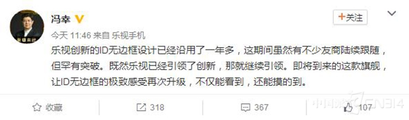 看起来仿佛很难两全,但冯幸的微博似乎为圆满解决这个问题带来了一丝希望。“还能摸得到”——是不是意味着乐视新机将会采用曲面屏幕?