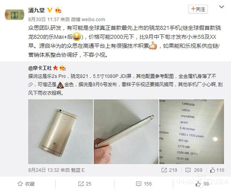 【CN314智能生活】全民都在等苹果iP7?如果说国内哪个手机品牌不服,那么非乐视莫属了。早在8月24日,乐视移动总裁冯幸就通过一条微博小尾巴确认了乐Pro3的消息,并伴随着对于国内金属手机质感的吐槽;3月30日,业内著名爆料达人潘九堂就转载了某网络人士关于乐视新机采用骁龙821的爆料,到了3月31日,冯幸再度“出击”,终于提到了一直“毁誉参半”的乐视ID无边框设计,各路猛料汇总,让人不得不对乐视新机充满期待。