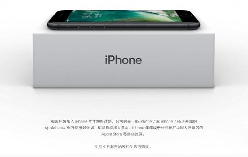 【CN314智能生活】昨天(9月8日)凌晨苹果新一代iPhone7/iPhone7 Plus正式发布,这次的发布并没有给我们太大的惊喜,外形变化不大只是在配置上和一些小地方做了调整。但是为了让用户买账,苹果又推出了一新的计划——年年焕新计划,用户每年都可以升级换购新iPhone。是不是很激动呢,打算要割肾买买买,别着急先看看具体啥情况,天上不会有天上掉馅饼的好事。