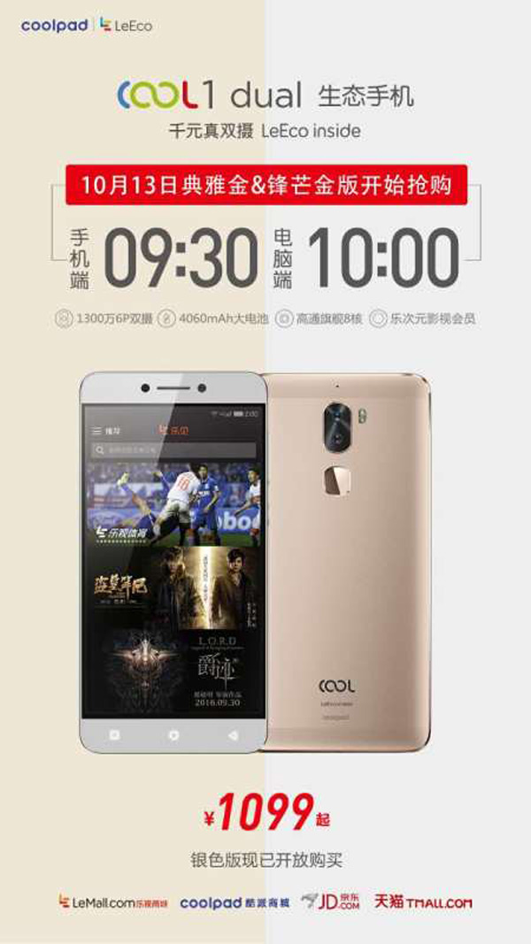 【CN314智能生活】cool1 dual凭借酷派多年来做手机的经验和乐视独特的系统生态,在市场上一举取得成功,创作出发布以后七天内预约千万,“黑色919”单日销量超过30万台的神话。今天,cool1 dual锋芒金版正式开售,手机端用户在9:30,电脑端用户在10:00后都可以参加抢购。