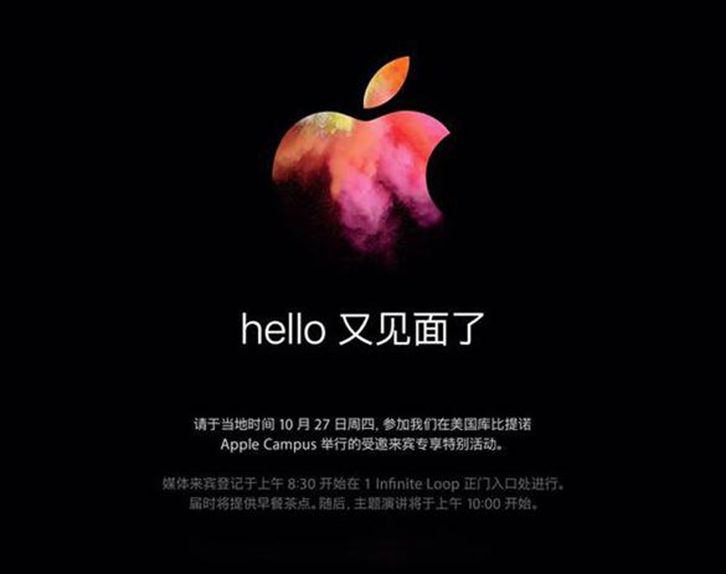 就在今日(10月20日)凌晨,苹果正式向媒体公开邀请函,确定将于美国当地时间十月二十七日(北京时间十月二十八日)召开新品发布会,发布会将在加州库比蒂诺(Cupertino)总部举行。这次发布会的主角是Mac系列电脑,而且距离上一次电脑发布已经过了相当长的一段时间,可以看出这次苹果打算要发大招了,换苹果7的肾还没有长全,现在又得重新割一次下来,你们准备好了吗?