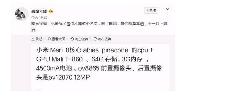 除了小米NANO的曝光信息,关于小米的另一款手机小米5C同样被传的沸沸扬扬。用户之所以如此关注小米5C的原因是网传这款手机很可能会搭载小米自主研发的松果处理器。