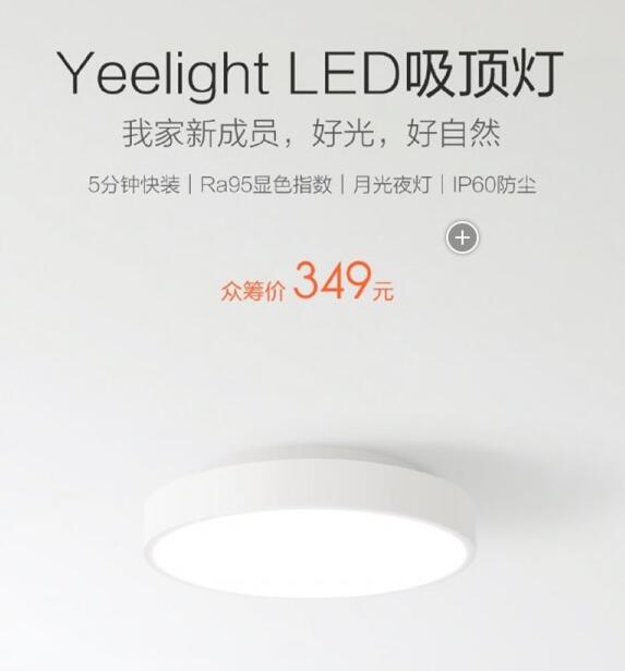 到了今天,这款吸顶灯终于发布了,总体来看,这款产品拥有吸顶灯光线柔和、外观简约时尚等特点,同时容易安装。这款吸顶灯的众筹价格为349元,按照小米类似产品的定价,这款新品的价格其实并不高。与主流的菲利普、松下等品牌相比更具有性价比的优势。