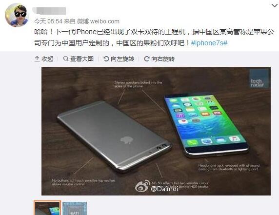 有消息称,苹果将在2017年的新款iPhone手机中采用双卡设计,而在今年10月份苹果中国也曝光了两项双卡双待专利申请,分别是双SIM卡网络选择与双SIM卡功耗降低技术。虽然专利申请并不意味着将推出这一技术,但至少让我们看到了苹果双卡手机的希望。不过也有网友调侃到,以iPhone的电池来看,单卡版本已经需要一天一充甚至一天几充,那么双卡iPhone的待机与续航可能会更加"不忍直视"。当然,既然双卡要消耗更多电量,苹果就有必要拿出更好的省电技术来帮助双卡iPhone至少保持相同的续航与待机能力。